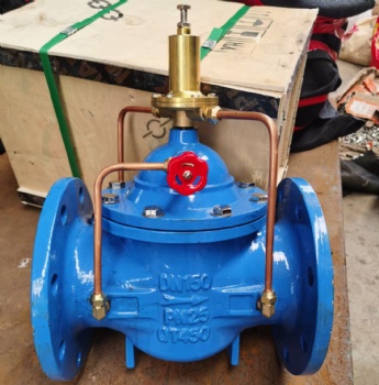 La entrada de la válvula principal está conectada a la válvula piloto a través de un tubo de control, y cuando la presión en el lateral está por encima del uno para la válvula piloto, se abre la válvula piloto para aliviar la presión en la parte superior de la cavidad del diafragma y se abre el disco principal junto con la válvula principal. Alivia la presión y, cuando la presión baja del conjunto, la válvula piloto está cerrado.
